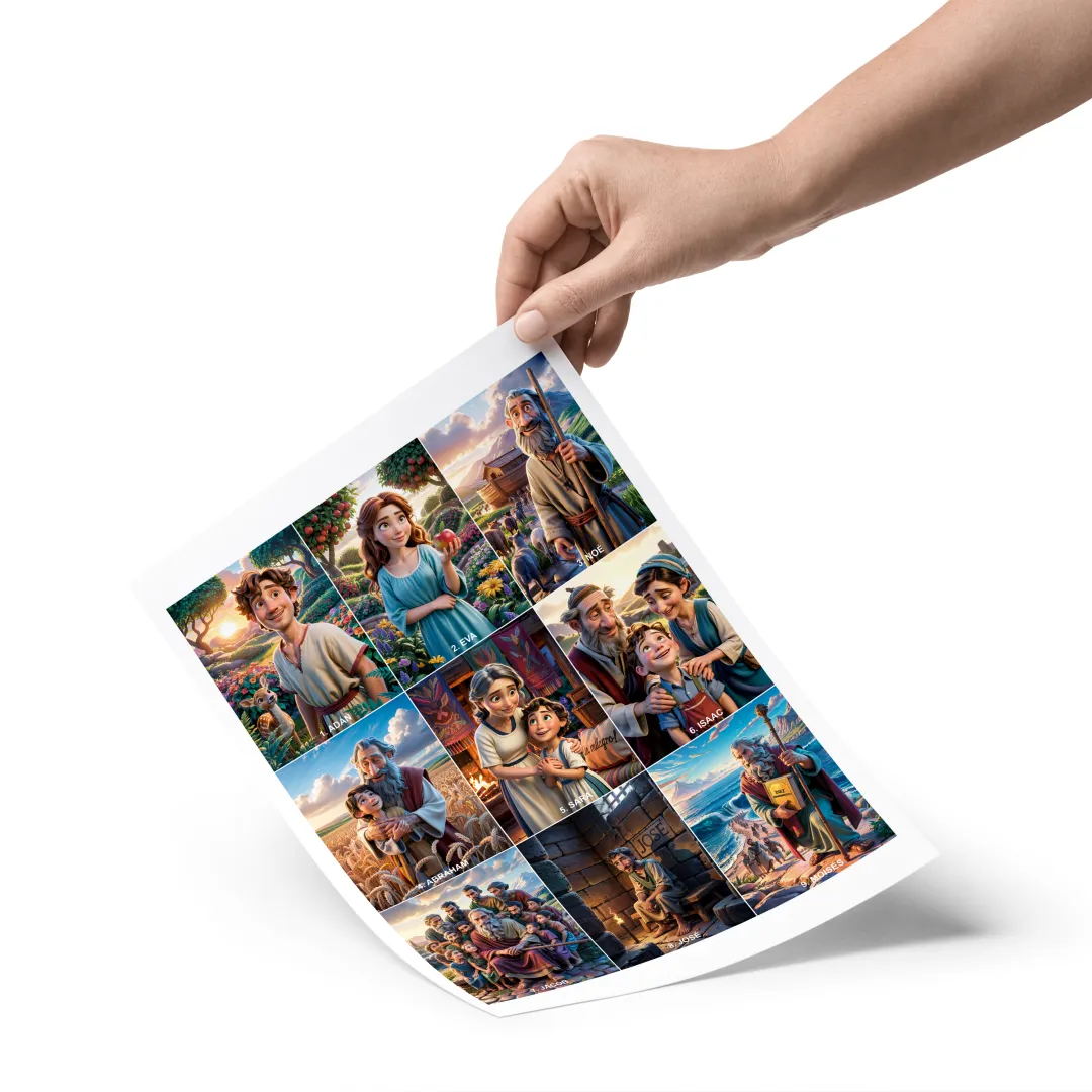 Un hermoso poster decorativo para enmarcar, con una escena bíblica que inspira, alegra y les recuerda que Dios siempre cuida a quienes confían en Él.